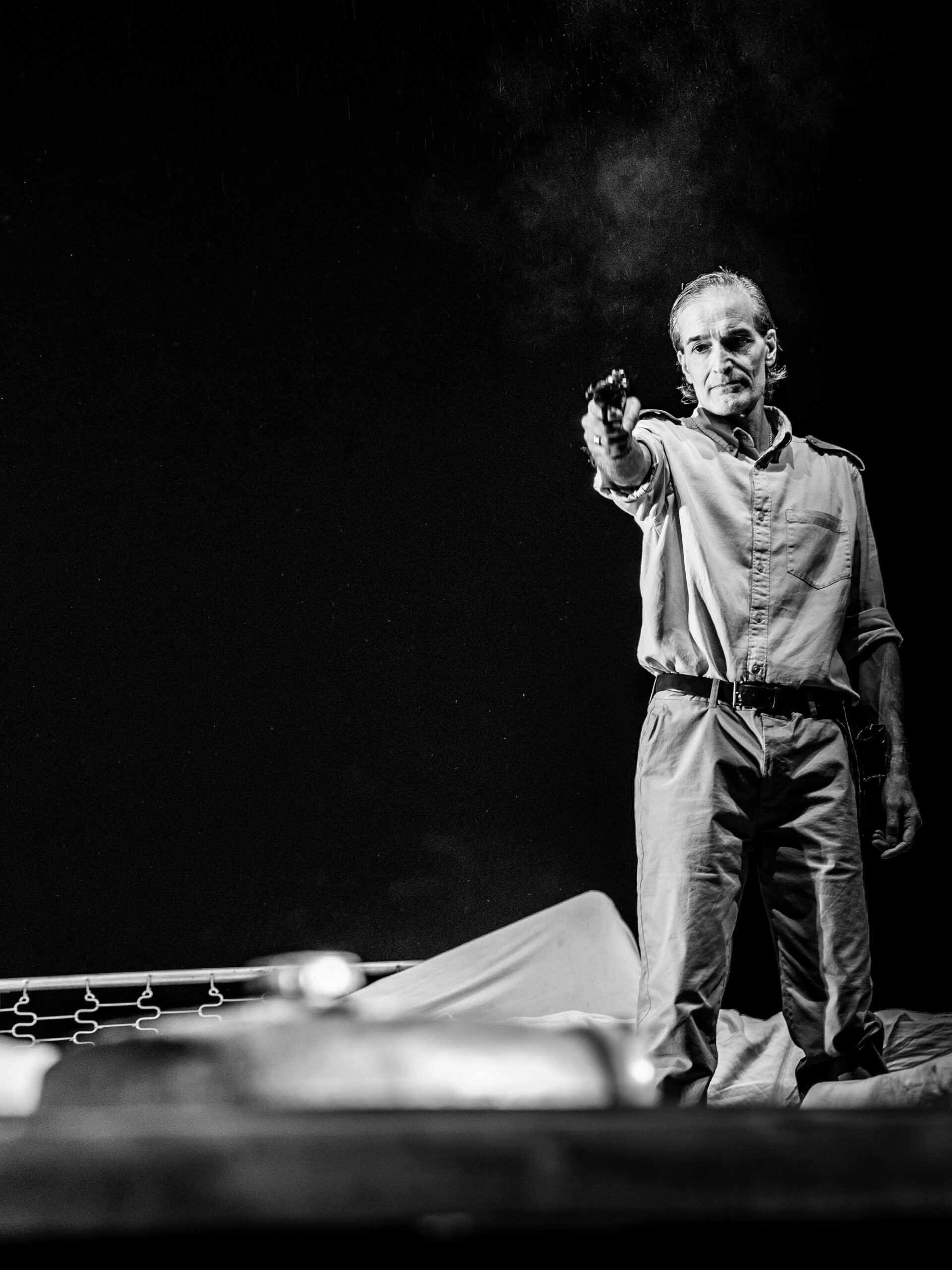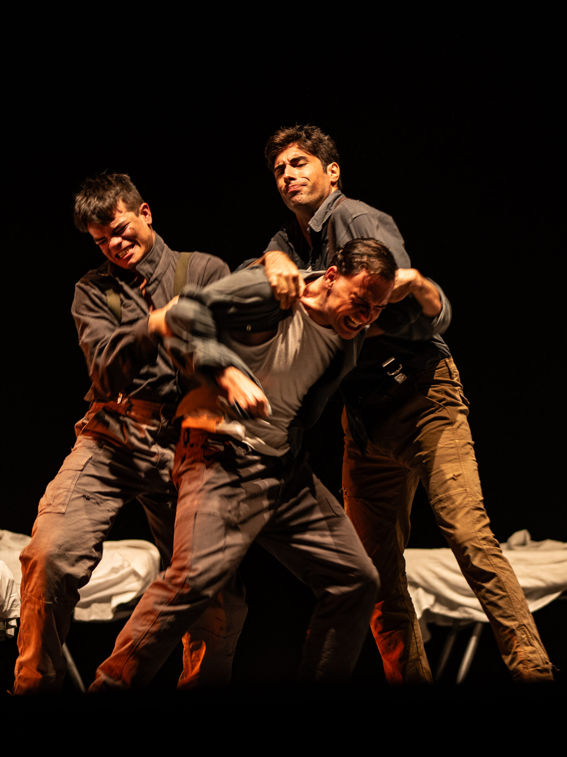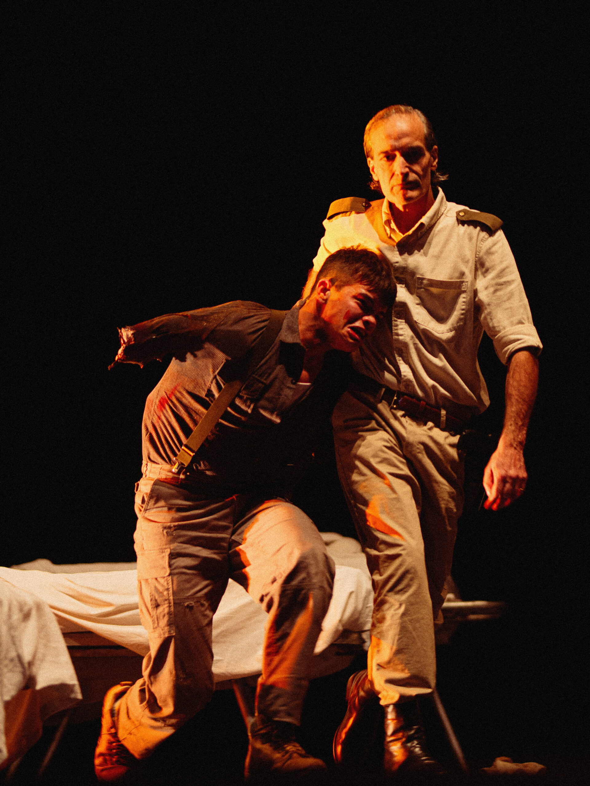 Sotto la sabbia è un testo originale di Alessio Luca Bartelloni e Filippo Fantoni, per la regia di Filippo Fantoni. Attraverso una drammaturgia essenziale e tagliente, lo spettacolo esplora la fragile linea tra colpa e redenzione, tra obbedienza e responsabilità, tra vittima e carnefice. Un racconto umano e spietato, che mette a nudo le ferite invisibili lasciate dalla guerra, ben oltre la fine dei combattimenti.