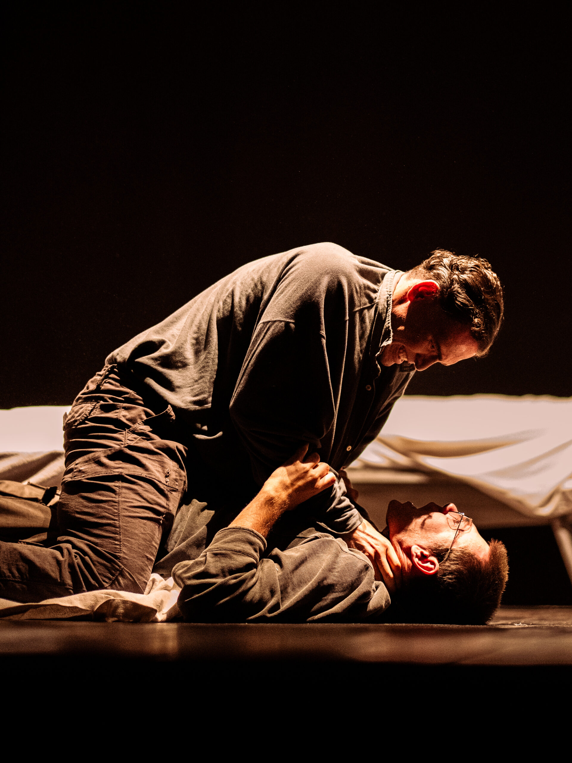 Siamo spesso portati a dividere la realtà in bene e male, in vittime e carnefici, ma la guerra incrina inevitabilmente queste certezze, mostrando quanto fragile sia il confine che le separa. Sotto la sabbia si concentra proprio su questa frattura: racconta una condizione in cui responsabilità e vulnerabilità convivono, senza indulgere né nell’assoluzione né nella condanna. Perché il teatro, a differenza della storia o della politica, ha la possibilità di abitare le zone grigie, di restituire complessità laddove il discorso pubblico tende ad appiattire.